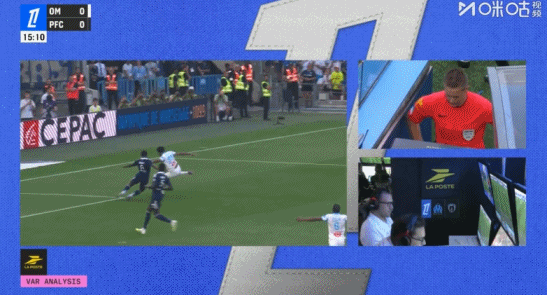 第15分钟,奥巴梅杨造点,格林伍德点射破门,马赛1-0领先。